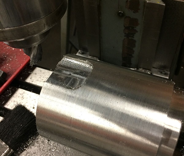 Disaster! The thin flow control piece proved difficult to mill. This part was ultimately 3D printed.