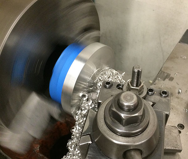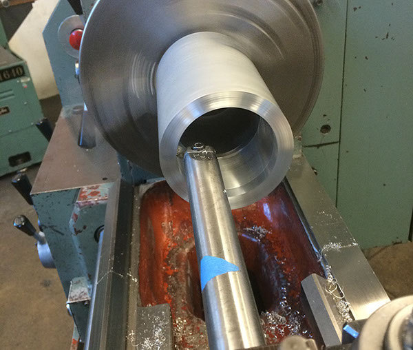 Using the lathe to create the top that would sit on the top of the candy reservoir.