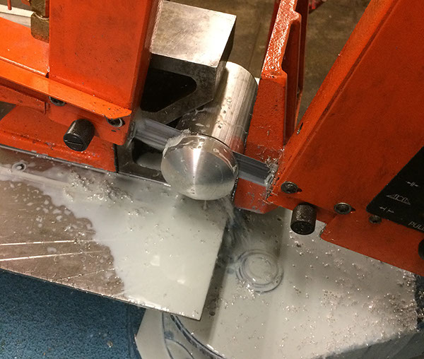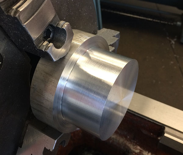 Cutting off the knob after it had been machined using the radius cutter on the lathe.