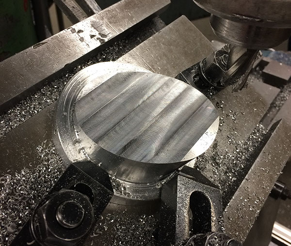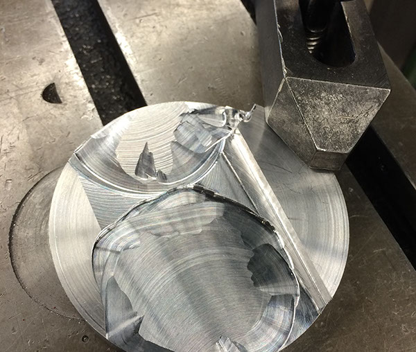 Disaster! The thin flow control piece proved difficult to mill. This part was ultimately 3D printed.