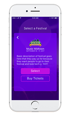 Once the user selects a concert, they enter into the customized view for that festival. Since many festivals have their own unique feel and vibe based off the kind of music or setting at that festival, I thought it was important to give festivals a way to customize how viewing information in the Groupie app looked. This was thought to serve two main purposes - to keep that feeling consistent between the festival experience and in the app, but also make it easier to understand what festival you were currently planning for if a person was planning on attending multiple festivals in the future. For this exercise, I used the main colors of the Music Midtown festival in Atlanta.