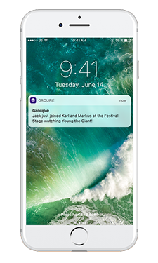 Additionally, I thought about another scenario in which your friends all decided to meet at another stage. In this situation, we would send another push notification to let you know that members in your group just joined other members in your group at another stage, so you don’t miss out on spending times with your friends. I also created a basic logo for Groupie, made up of three microphone-looking people (…or people-looking microphones…?), symbolizing the musical nature of the app but also the social aspect.