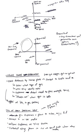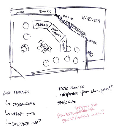 However, upon further investigation, we realized there were a few flaws to our initial designs. There were limitations to “self-self-checkout”, making it difficult for employees to verify that someone wasn’t stealing items from the store. Placing televisions in front of each parking spot was expensive and was subject to issues with glare and visibility, especially during sunlight hours, and may clog RaceTrac locations with people endlessly watching the local sports game in their vehicle. We set out to challenge ourselves even more, and used feedback from our first ideas towards our next iterations and final design.