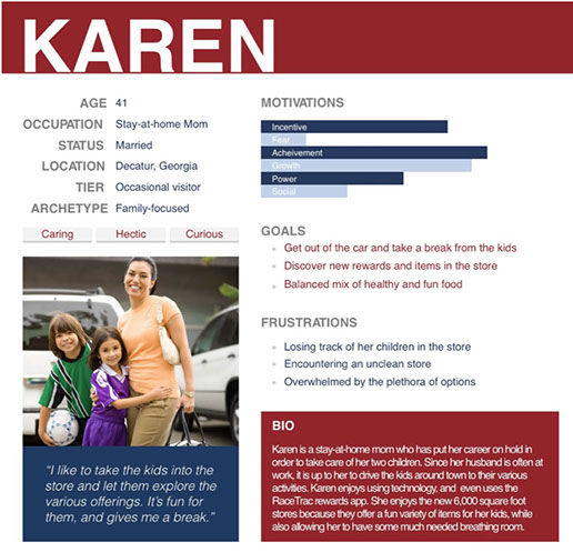 Karen represented a mother with children who typically visited RaceTrac only when stopping for gas. Because she has kids, her family often enjoys getting frozen yogurt from Swirl World. She isn’t particularly loyal to RaceTrac, but appreciates how clean and open the stores are.