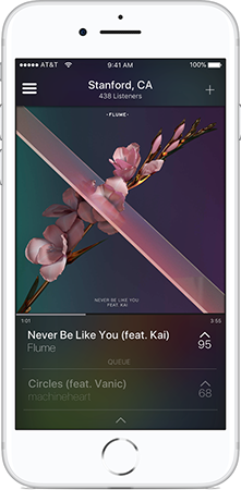 Lastly, people listened to songs that were popular on their campus or in the local area, either shared through large groups or over radio. These often featured local artists or artists that were actually students. Thus, listeners were connected to each other due to similarity in their location, despite possibly not knowing each other personally. We wanted to address this situation, so we called this “Around Me” queues - queues that were defined by suggestions that were made within a few miles of your current location. Like “Group” queues, songs were removed after being on the queue for a certain amount of time.