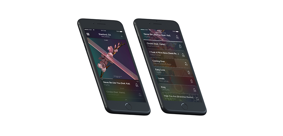 The problem with connecting a personal device to a shared sound system is that bias always occurs when sharing music - someone who loves rap has a higher tendency to play rap, and the same happens with fans of other genres like EDM, alternative, or showtunes. That might not be a problem if everyone has the same music tastes, but in a diverse world with fluctuating moods and feelings, that simply doesn't happen. Moreover, with a single connection, this means it is nearly impossible for everyone to have the opportunity to share the music that they wanted to listen to. Frequently, we noticed that listeners that were disappointed with the music being played in their environment often felt tempted to (and in some cases, actually did) unplug the currently playing device and replace it with their own, creating a discontinuous stream of music that ultimately resulted in some bitter feelings between members of the same community. We wanted to tackle this problem and reimagine new ways music could be shared socially.